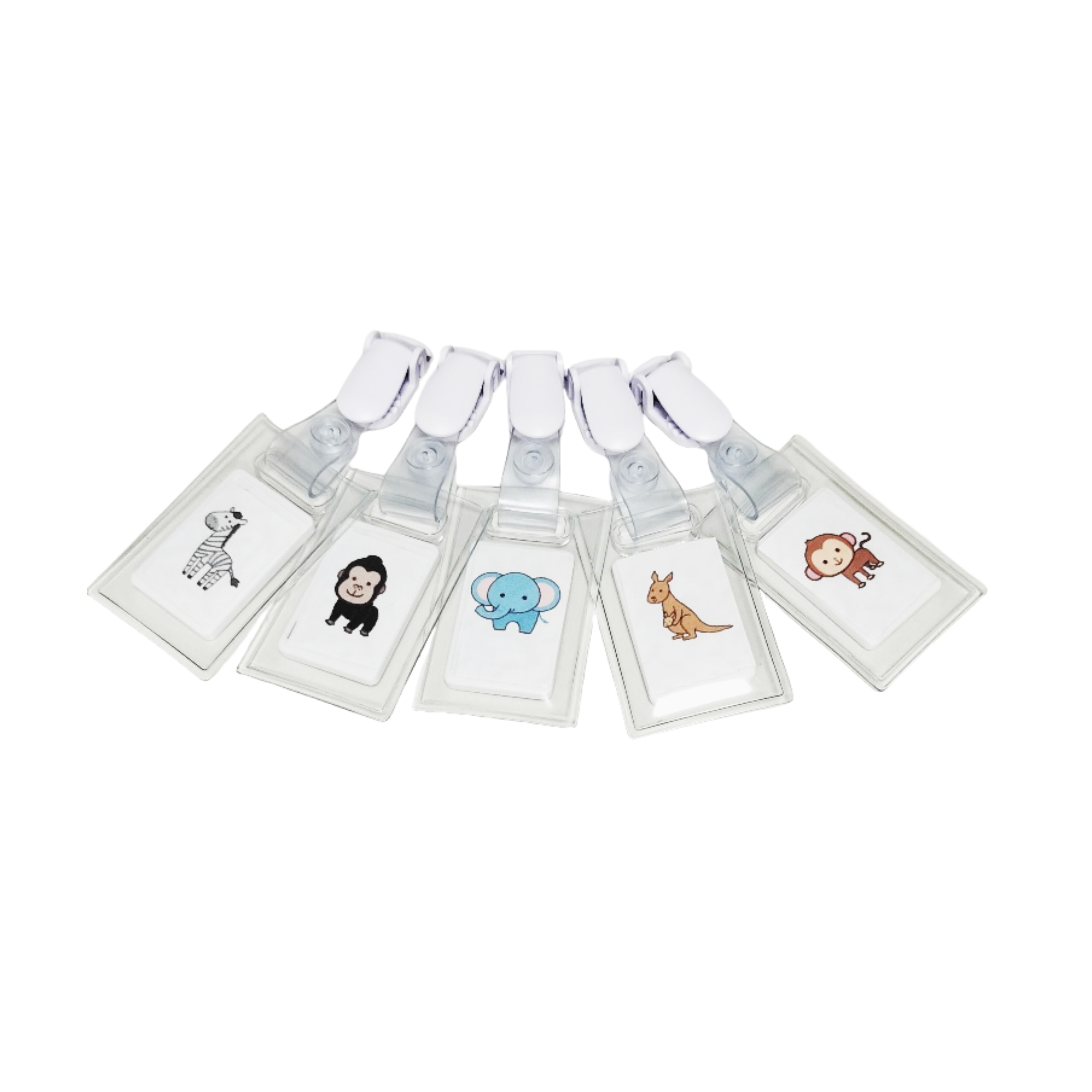 脱落防止設計されたソフトビニール製のクリップ付きタグケースで、子どもが安心して身につけられます。