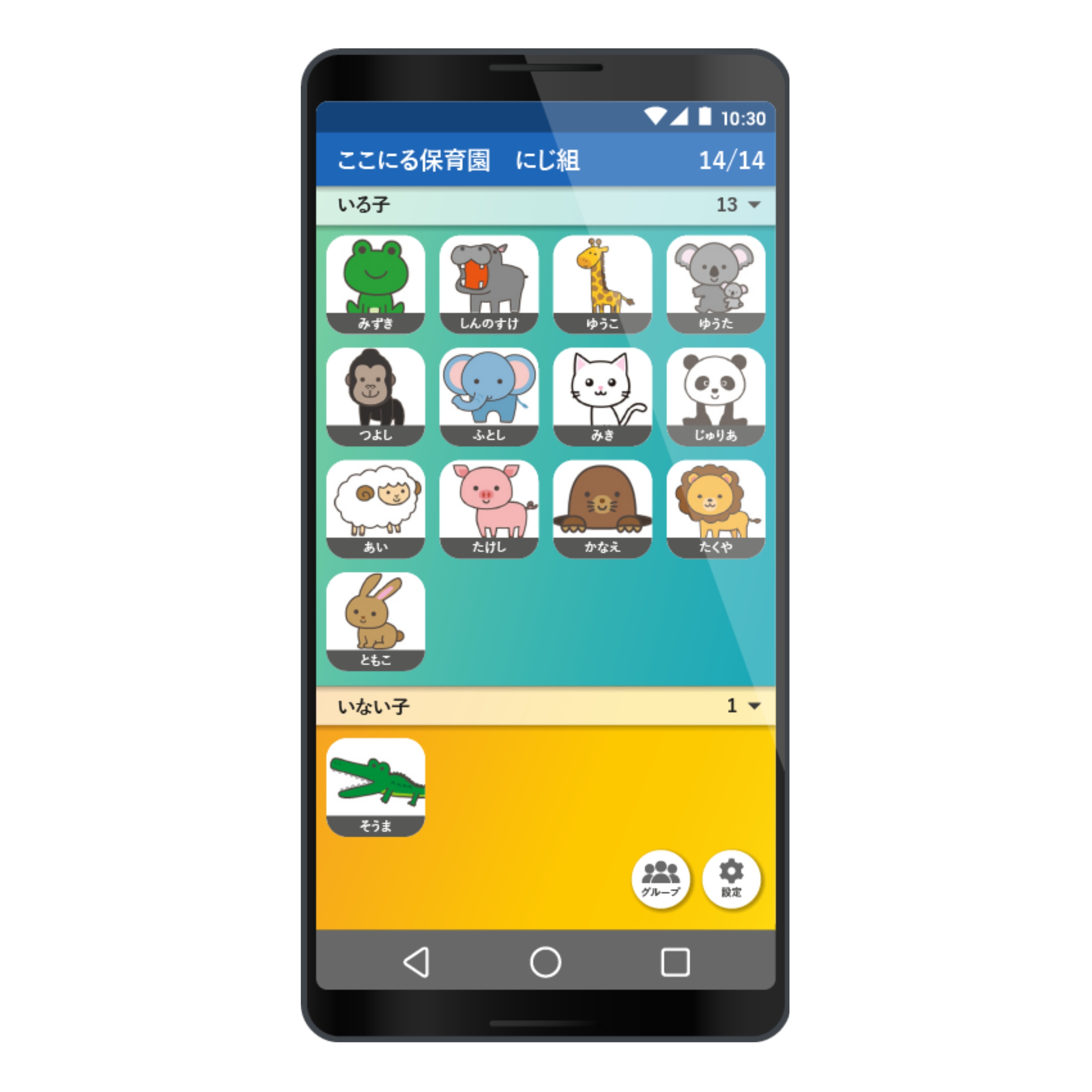 保育士さんが日々に何度も行う人数確認。点呼ボタンを押すだけでその場にいる子の人数を数えます。